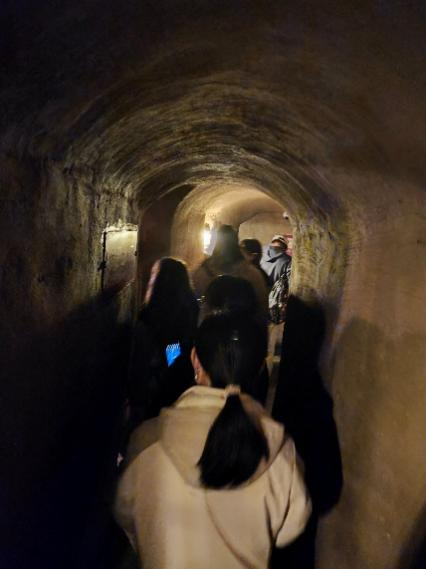 焦庄户地道战遗址纪念馆位于北京市顺义区龙湾屯镇,是北京市爱国主义教育基地、党史教育基地,被誉为“人民第一堡垒”。在纪念馆内,大家依次参观了地道战纪念馆、地道遗址。通过大量珍贵的历史文物、图片资料和影像记录,了解了冀东军民在中国共产党坚强领导下,巧妙利用地道与敌人开展顽强斗争的英勇事迹,深刻感悟人民群众在抗战中展现出的无穷智慧和磅礴力量。随后,大家实地探访保存完好的抗战地道遗址。在狭窄潮湿的地道中,大家弯腰前行,亲身体验抗战时期军民协作的智慧与艰辛,深切体会到革命先辈在艰苦环境中展现出的顽强斗志与创新精神。